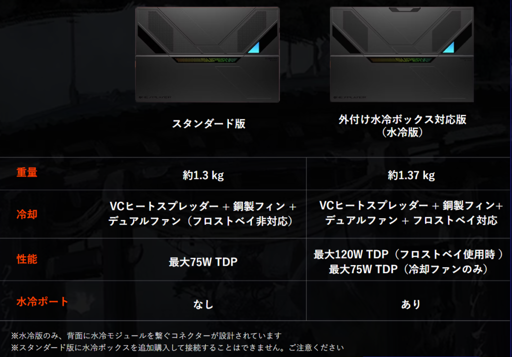スタンダード版と水冷ボックス対応版の違い