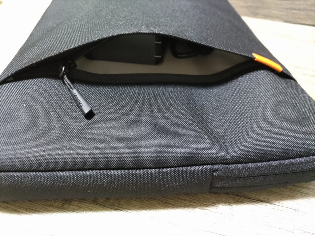 ポケット部分に充電器やケーブルやマウスなどが収納可能です。